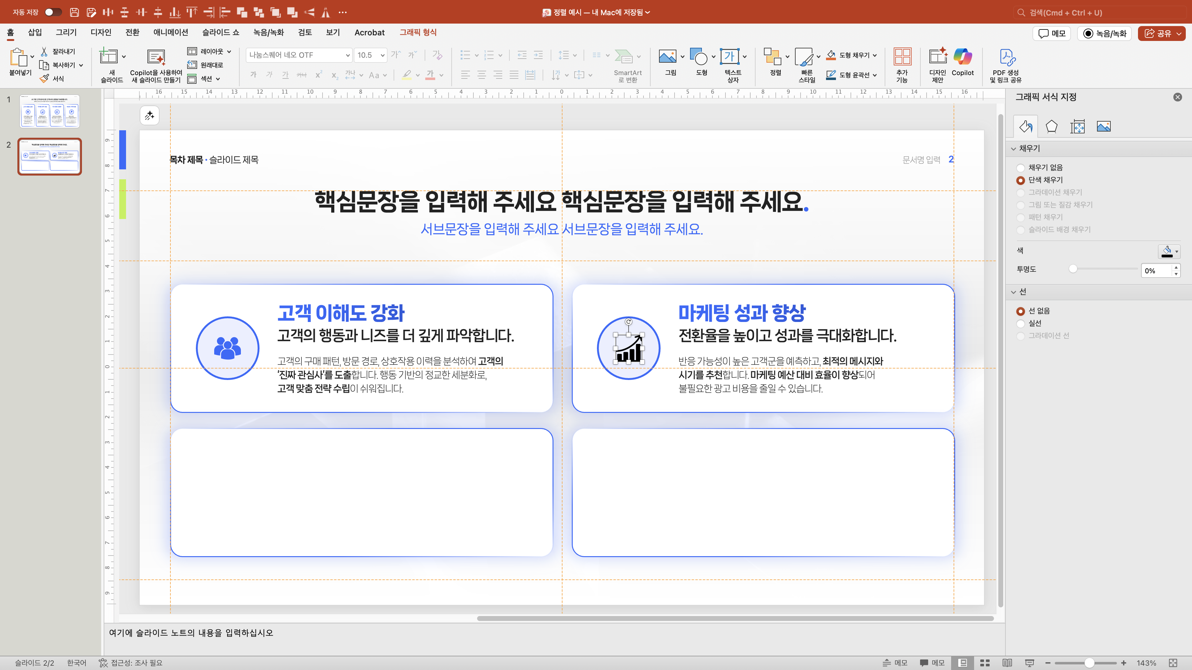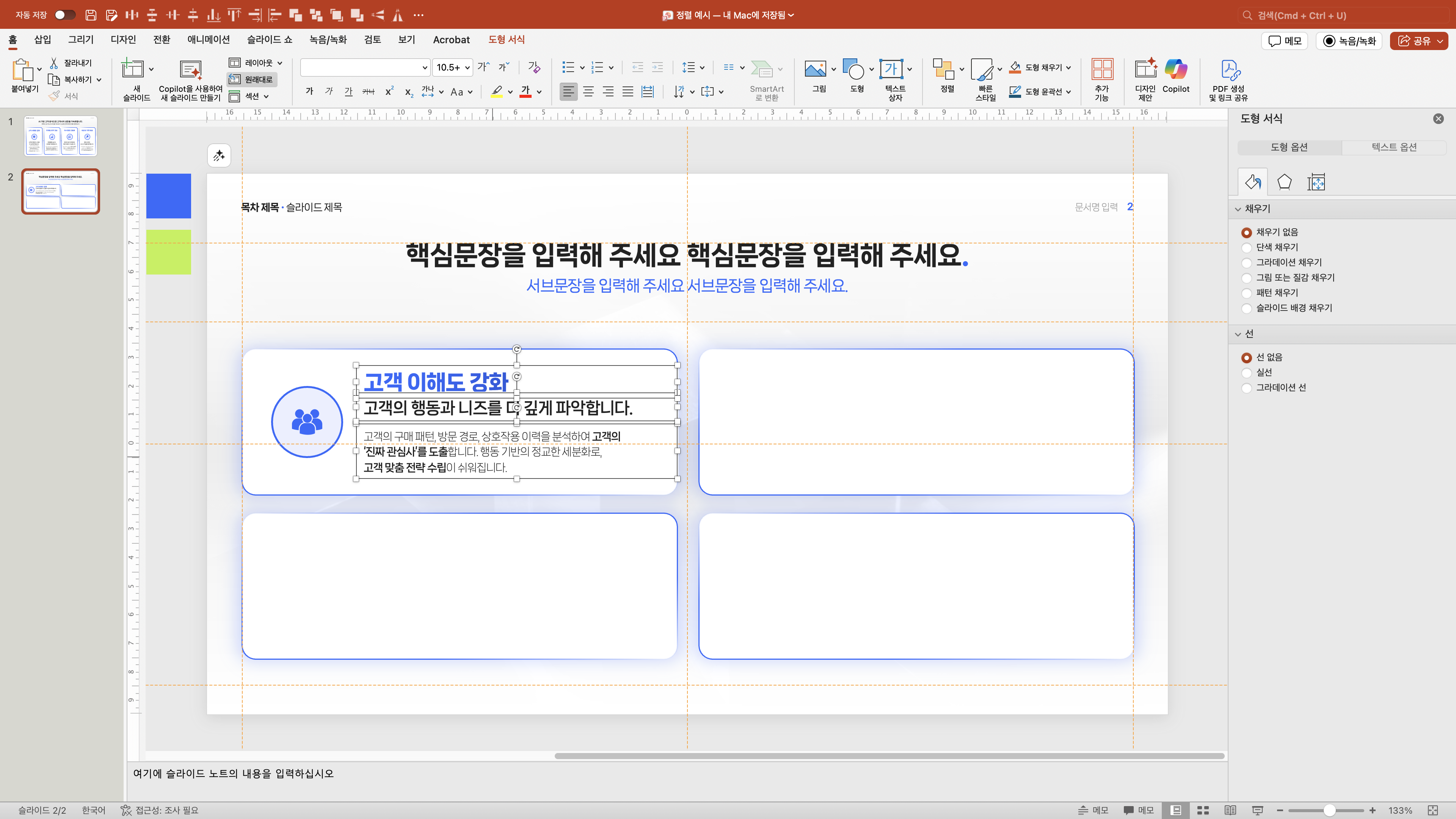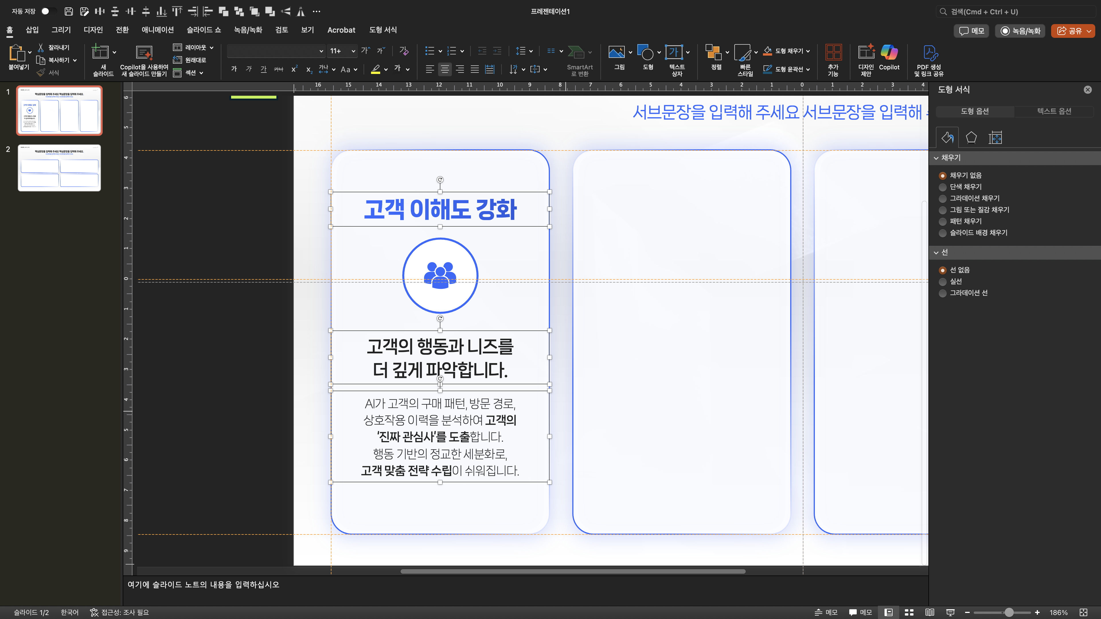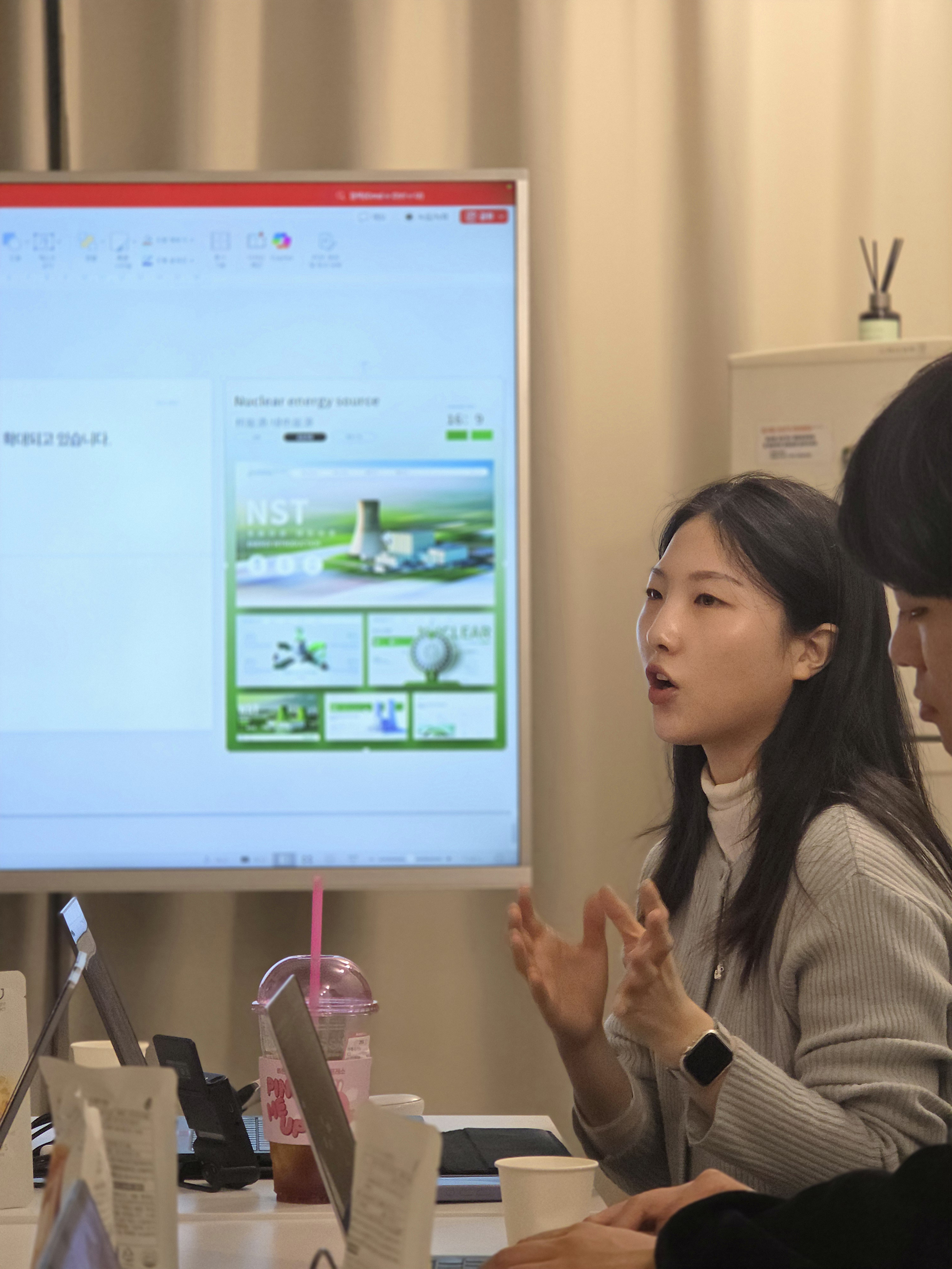 ์ฐจ PPT ๋์์ด๋์ธ ๋๋ฃ์ ํจ๊ป ์ด๋์ด๋๊ฐ๊ณ ์๋๋ฐ์, ์ ํฌ๋ ์ ๋ฐ์ ์ผ๋ก PPT์ ๋ํ ๋น์ทํ ๊ด์ ์ ๊ฐ์ง๊ณ ์์ง๋ง, ์๋ก ๋ค๋ฅธ ๋ถ๋ถ๋ ๋ถ๋ช